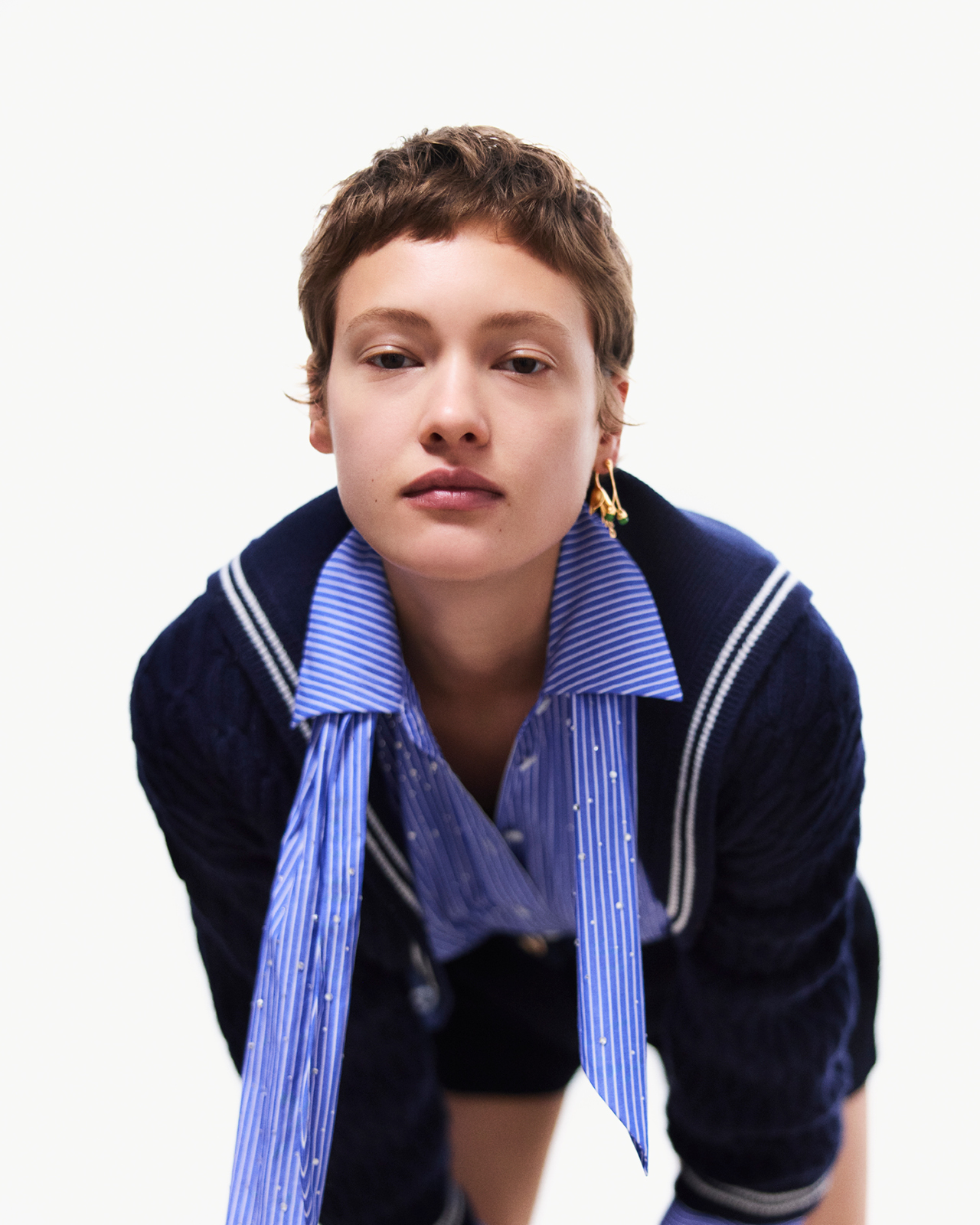 For Spring-Summer 2026, the Maje woman is a modern navigator, an explorer inspired by the women who steer their own course. The wardrobe channels this energy with a strong maritime spirit, where female strength meets the force of the elements.